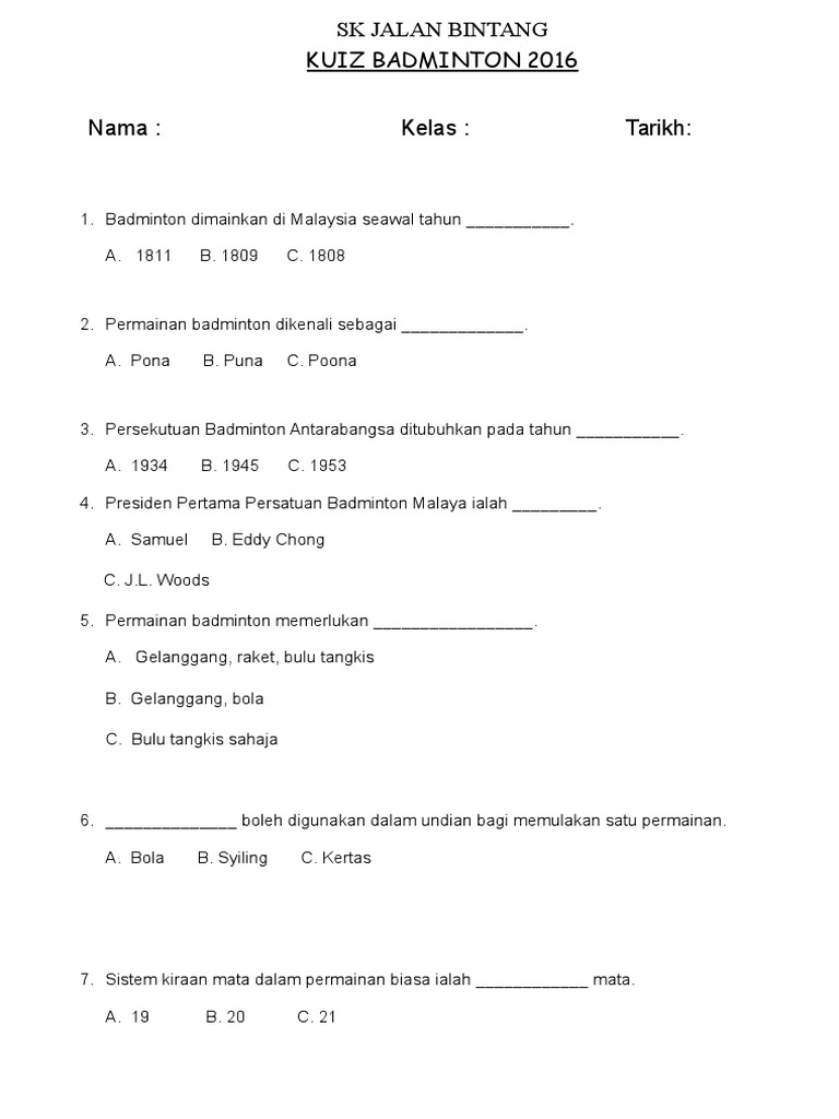 Contoh soalan kuiz badminton mainan anak, contoh soalan kuiz badminton descargar aptoide full
